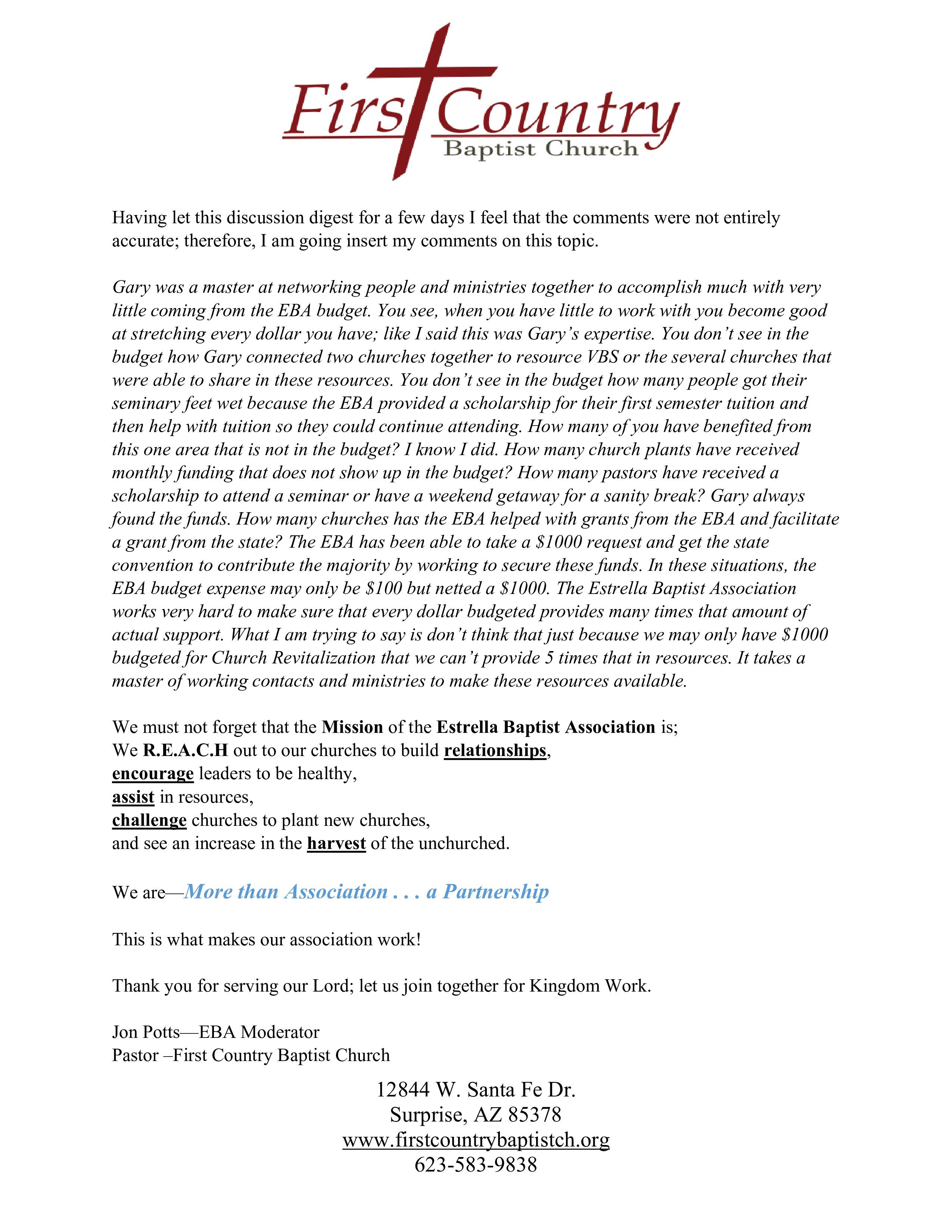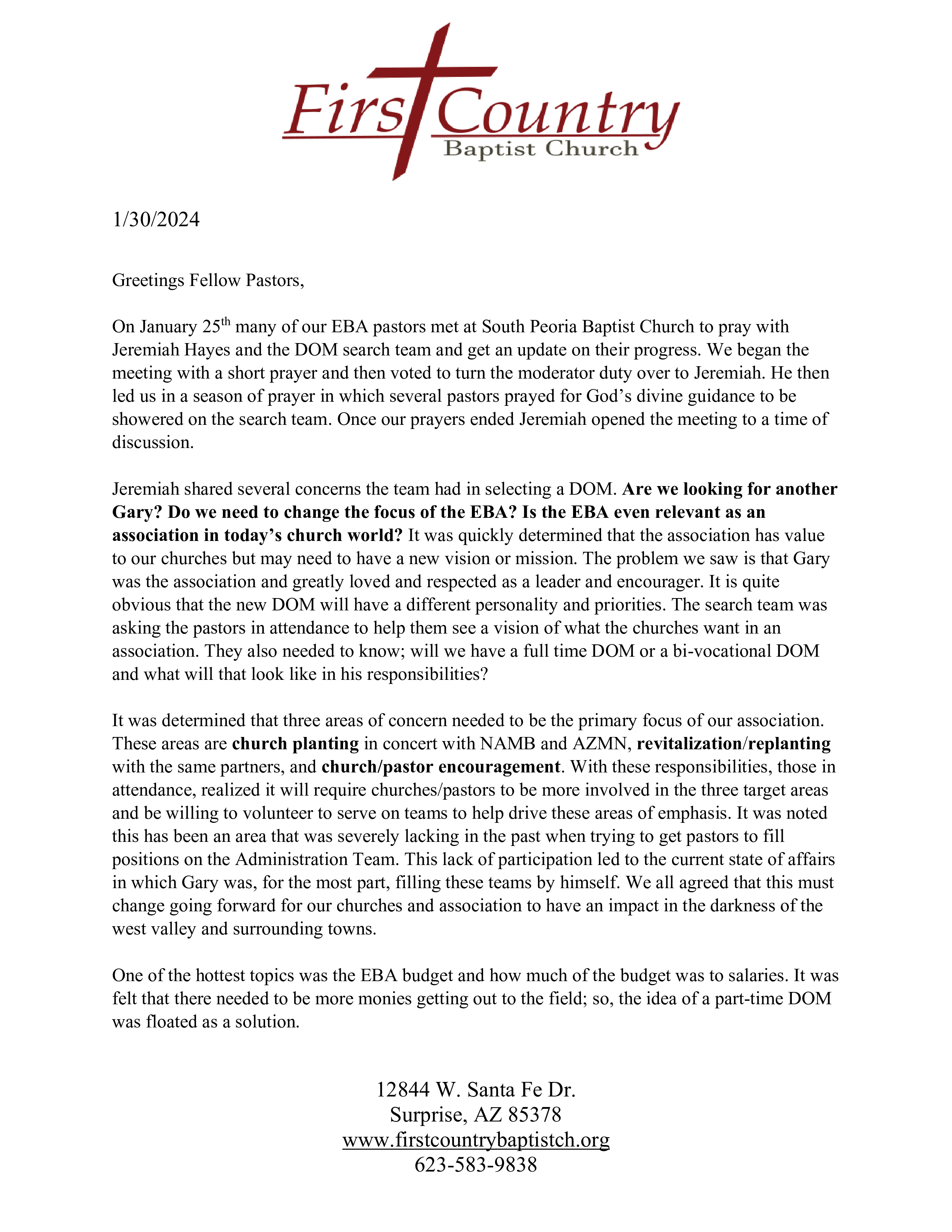 Update - EBA Director Search Team